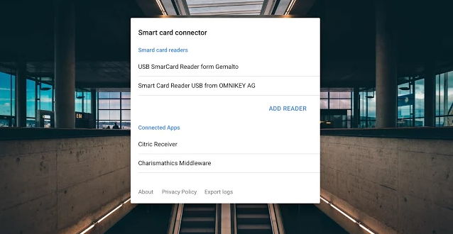 Google has provided a SmartCard Connector Chrome App as the implementation of the PC/SC API, so a custom middleware App can talk to smart card reader via it. The connector App is bundled together with the USB CCID Driver. After installing the App from Chrome Store, your reader will be shown in the App. Unfortunately, the App only works in the Chrome Device, which means we can’t develop the App for Windows.